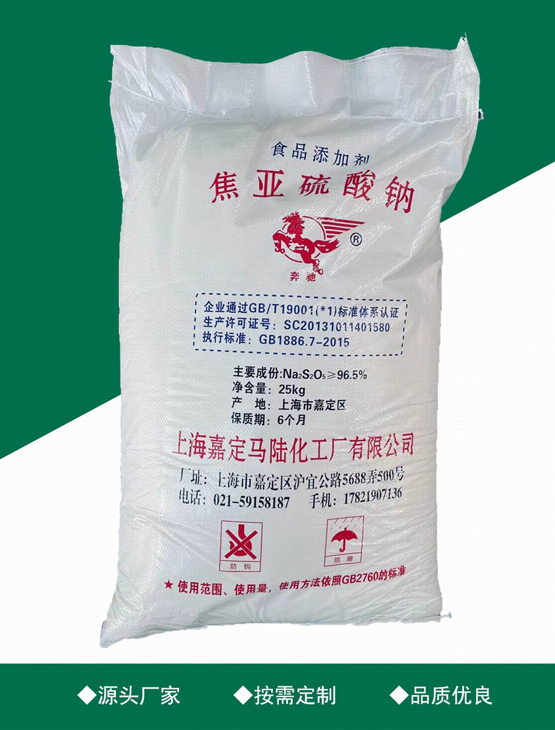 上海嘉定馬陸化工廠有限公司主營生產,焦亞硫酸鈉、亞硫酸氫鈉等產品生產,幾十年的專注焦亞硫酸鈉研發生產,公司擁有完整、科學的質量管理體系,為確保公司產品能夠長期立足于市場,增強客戶的粘性,可滿足客戶的非標定制需求,可提供產品各個用途的解決方案,公司重信譽、守合同、保質量、快速發貨以,我們擁有專業的售前售中、售后團隊共同協作,確保用戶采購中的每個環節都能有滿意的體驗度。